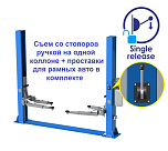 Гарантия 36 мес – наш монтаж, 24 мес – самостоятельная установка. Срок эксплуатации – не ограничен. Усиленная конструкция подъемных кареток. Снятие и установка на «стопора» с пульта управления (электростопора - экономия времени) + подхваты (лапы) – 2 прямых + 2 угловых + увеличенный подъем авто до 1825 мм + увеличенный проезд 2560-2820 мм. 220/380В. г/п. 4 тонны.