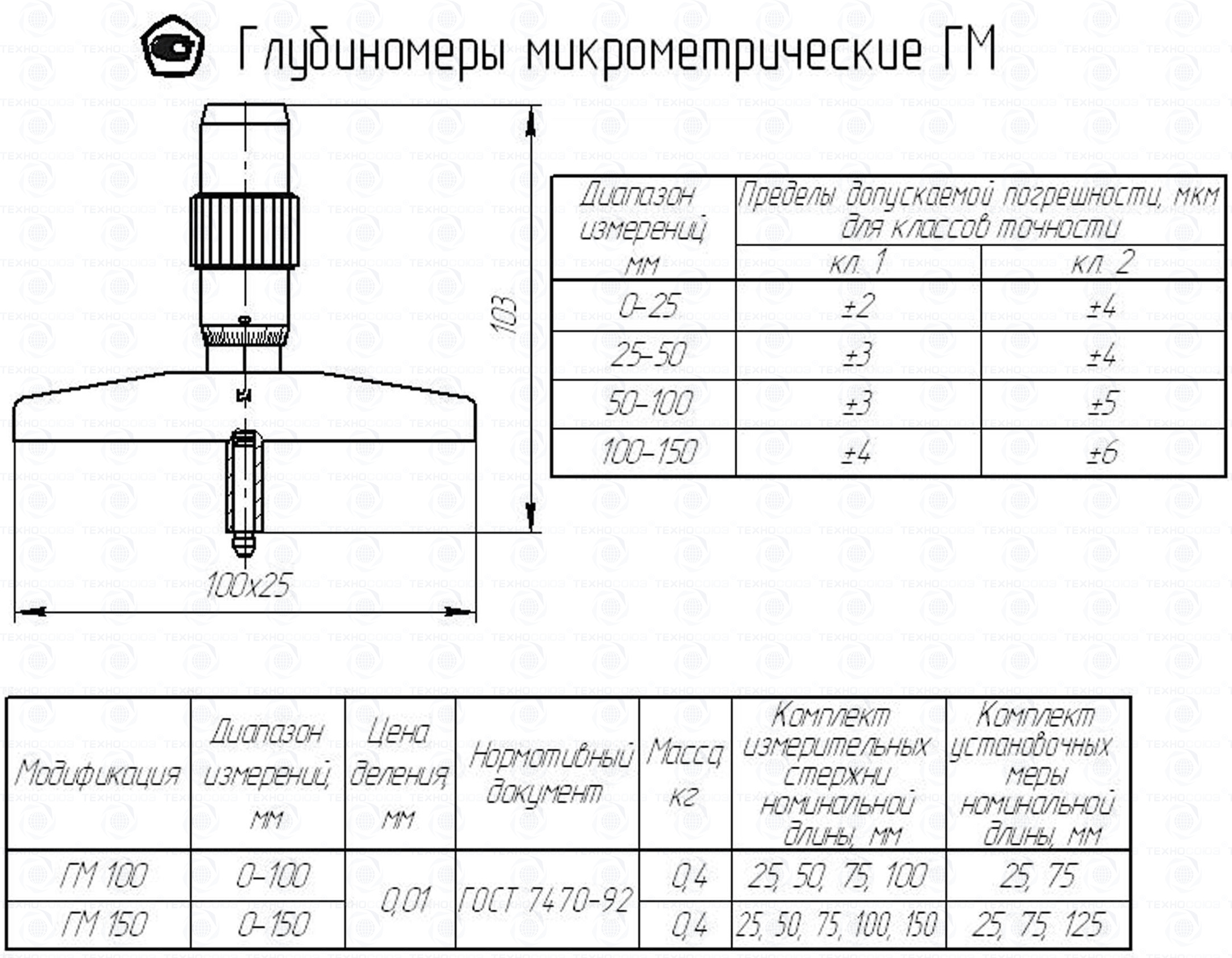 Цена деления 0,01 мм. Диапазон измерения от 0-150 мм. Для измерения глубины пазов и высоты уступов. Класс точности 2. ГОСТ 7470-92. Поставляется в двух вариантах с поверкой и без поверки! Диапазон измерений обеспечивается набором сменных измерительных стержней, оснащенных твердым сплавом: ГМ 150 (6 шт.)