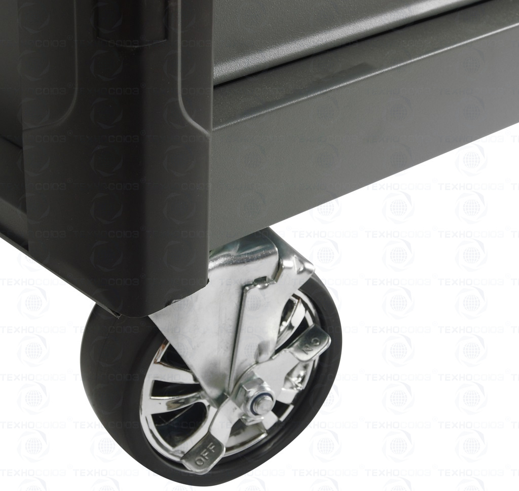 - Колеса размером 5"х2" (2 фиксированных 2 поворотных со стороны тормоза), изготовленные из термопластичного каучука, обеспечивают легкое и бесшумное перемещение тележки.