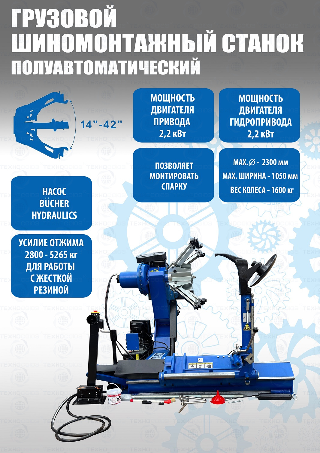 Комплект из TS-52D грузового шиномонтажного станка для дисков 14”-42”, с удлинителями на захваты до 52” - очень качественный станок. За последние 9 лет ни одной рекламации!!! Диски сталь + ALU Ø 14÷42” с адаптерами 14÷52”(опция). Автомат. Максимальное колесо Ø2300 ширина1050мм, вес до 1600кг. Моторы 2,2 + 2,2 кВт, 380В. Гарантия 12÷18мес. Гидронасос «BUCHER HIDRAULICS». Cтанок подходит для тракторов, сельхозтехники, еврофур и т.п. + ЛС-32 MAXY P Универсальный грузовой балансировочный станок для колес диаметром от 10 до 30 дюймов, имеет две программы для работы с легковыми и грузовыми колесами. Максимальный вес колеса до 200 кг. Оснащен функциями автокалибровки и самодиагностики.В стандартный комплект входит набор конусов для установки колес легковых автомобилей, микроавтобусов и легковых грузовиков типа "Газель", а также универсальный адаптер для установки колес большинства типов грузовых автомобилей. Для установки тяжелых колес ЛС 32 MAXIP комплектуется подкатной тележкой с пневматическим подъемным механизмом. Внесен в реестр средств измерений России Казахстана и Респ. Беларусь
