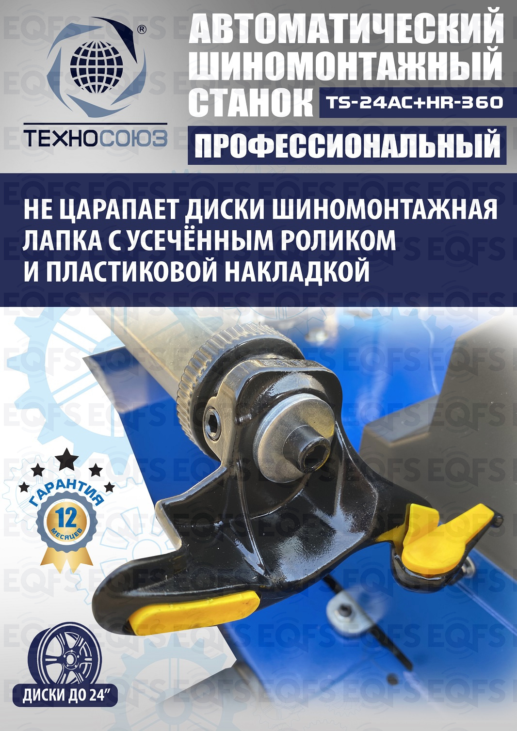 Автоматического шиномонтажного стенда TS-24AC+HR-360. В комплекте взрывная подкачка + третья рука для работы с низкопрофильными шинами и RanFlat! Для колес легковых автомобилей, легких грузовиков, микроавтобусов и коммерческой техники. Для дисков: внешний 10÷21”, внутренний 12÷24”. Напряжение 220/380В. Гарантия 18 мес. – наш монтаж, 12 мес. – самостоятельная установка.